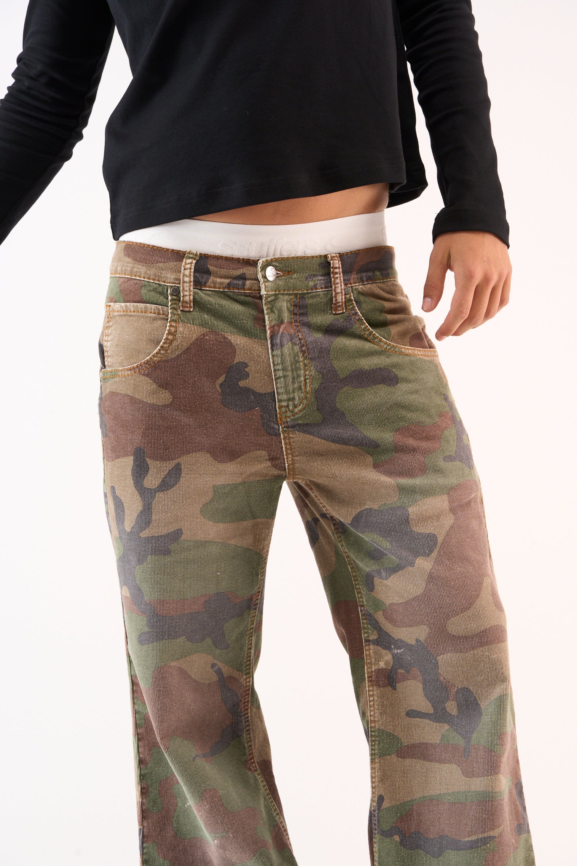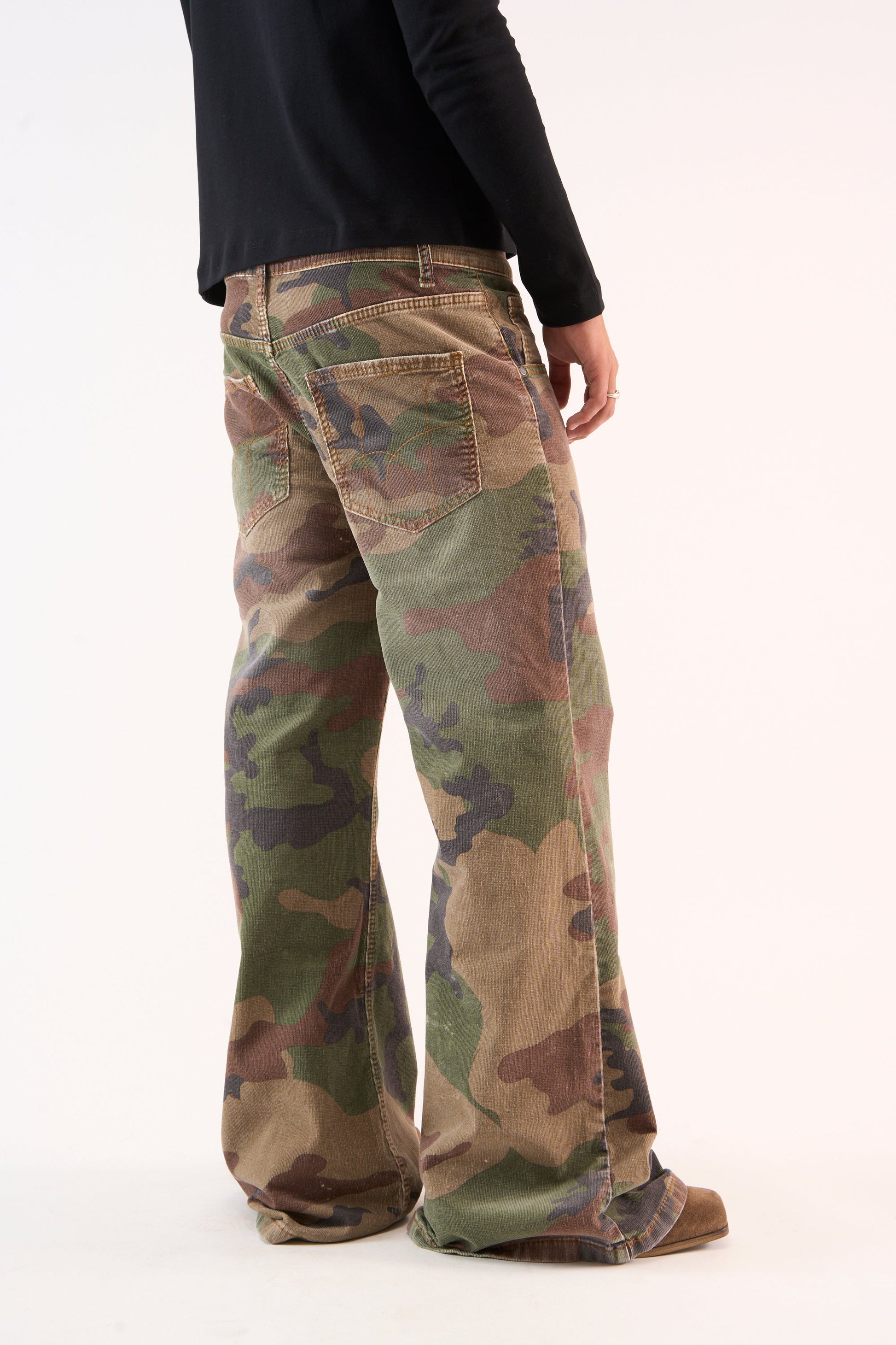 Pantalon camouflage évasé en velours côtelé